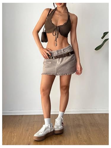 More information about MakeMeChic Women's Crochet Tie Front Halter Tops Open Back Sleeveless Y2k Crop Tops