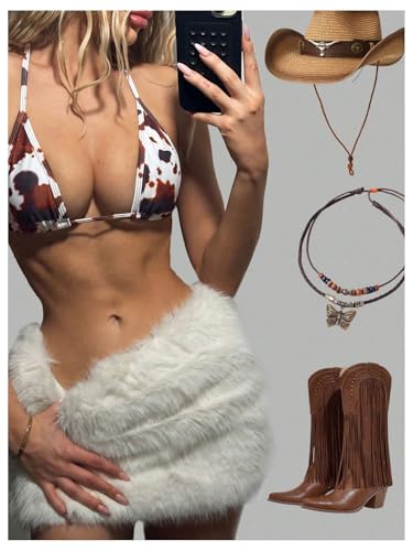 HOT ! Verdusa Women's Y2K Animal Cow Print Triangle Halter Bikini Tops Tie Backless Swimwear Top