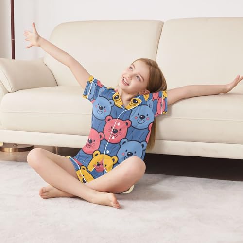 senya Pajama Sets Silky Button Down Nightwear Sleepwear Size 5-14 Years Yellow Blue Bears 5