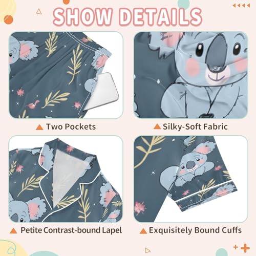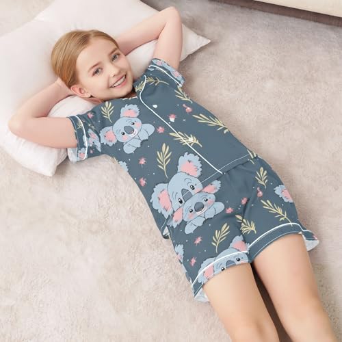 senya Pajama Sets Silky Button Down Nightwear Sleepwear Size 5-14 Years Blue Pink Koala 5