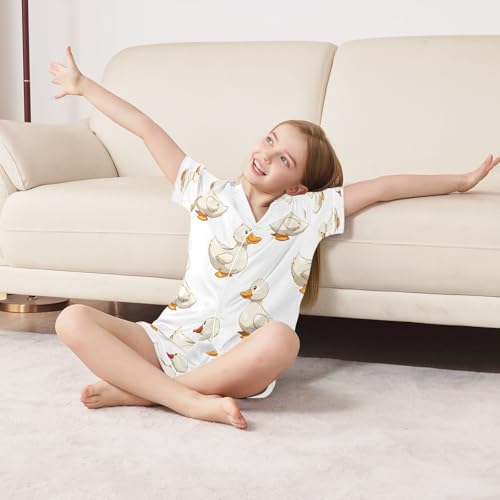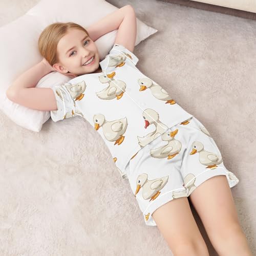 HOT ! senya Pajama Sets Silky Button Down Nightwear Sleepwear Size 5-14 Years White Duck