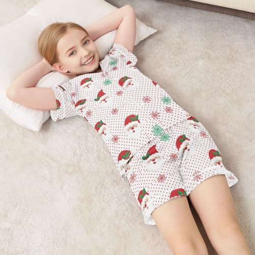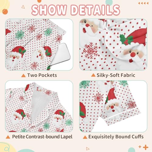 Satin Pajama Sets Short Sleeve Santa Claus Snowflakes Button Down Silky Nightwear 2 Piece PJS 5-14Y 6