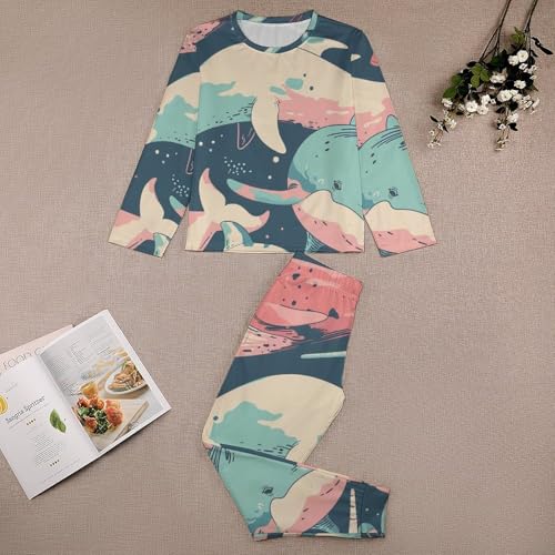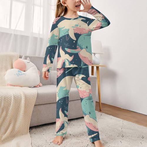 HOT ! Cute Narwhal PatternsChildren's Pajama Set Round Neck Long Sleeve Top + Pants Two-piece Set100CM