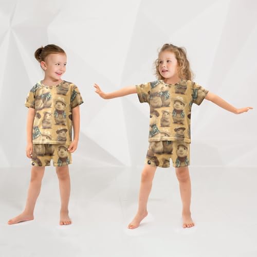 Pajama Short Sets Cute Guinea Pigs Pattern Soft Cotton Summer Sleepwear 2 Piece PJS Size 5-14T 6