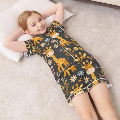 ALAZA Giraffe Flower Floral Satin Pajamas Set Short Sleeve Button Down Sleepwear Summer Pjs 2 Piece 1