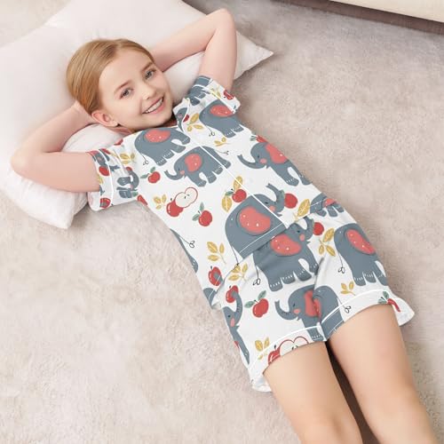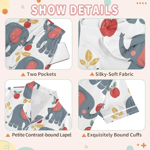 ALAZA Elephant Funny Gray Satin Pajamas Set Short Sleeve Button Down Sleepwear Summer Pjs 2 Piece 7