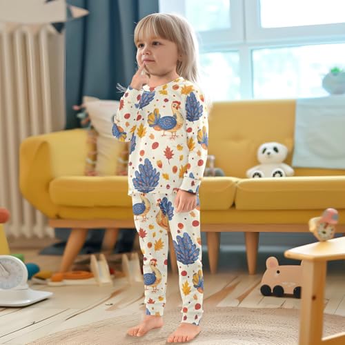 Pajama Sets Long Sleeve Autumn Leaves Chicken Turkey Soft Comfy Sleepwear 2 Piece PJS 3-8T 2