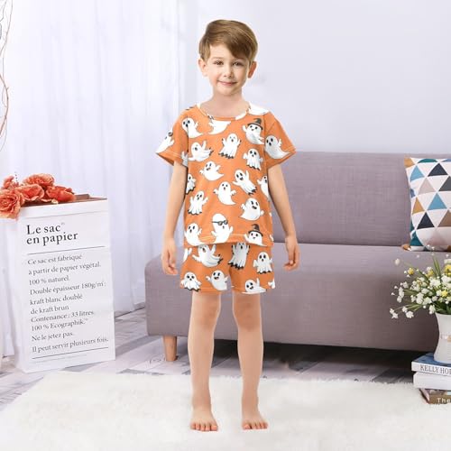 Pajama Short Sets Halloween Ghosts on Orange Soft Cotton Summer Sleepwear 2 Piece PJS Size 5-14T 4