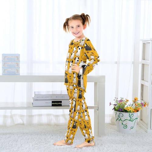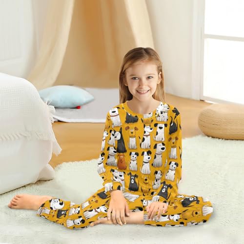 Long Sleeve Pajama Set for Girls Boys,Cartoon Dogs Pattern Print Comfy Crewneck Sleepwears,Soft Kid's Homewear Clothes Underwear Sets 8T 2