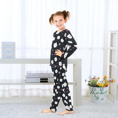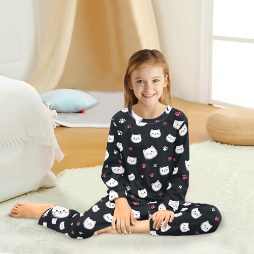 Long Sleeve Pajama Set for Girls Boys Kids,Cute White Cats Pattern Comfy Nightwear Soft Loungewear,Family Matching PJs Underwear Set 4T 6