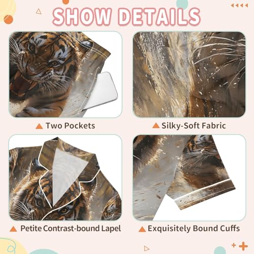 senya Pajama Sets Silky Button Down Nightwear Sleepwear Size 5-14 Years Angry Running Tiger 1
