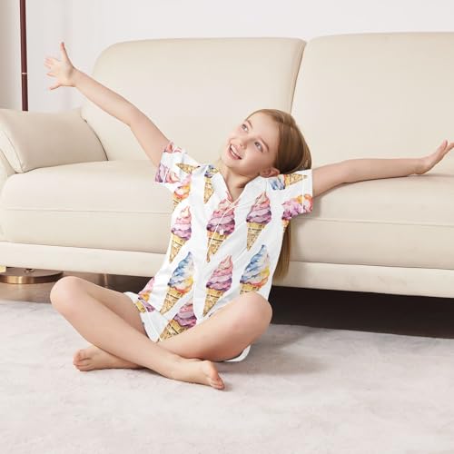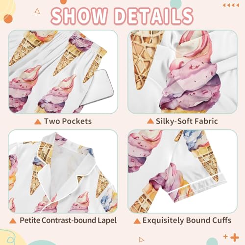 ALAZA Watercolor Ice Cream White Pajamas Satin Pajama Set Short Sleeve Button Down Sleepwear 4