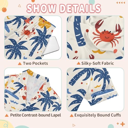 ALAZA Starfish Palm Leaves Crab Pajamas Satin Pajama Set Short Sleeve Button Down Sleepwear 4