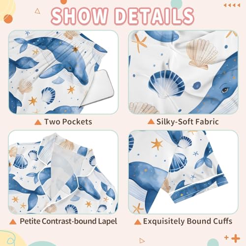 ALAZA Blue Whale Seashell Star Pajamas Satin Pajama Set Short Sleeve Button Down Sleepwear 3