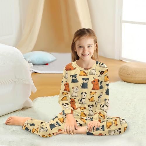 Long Sleeve Pajama Set for Girls Boys Kids,Cute Dogs Cats Pattern Print Comfy Nightwear Soft Loungewear,Family Matching PJs Underwear Set 4T 7