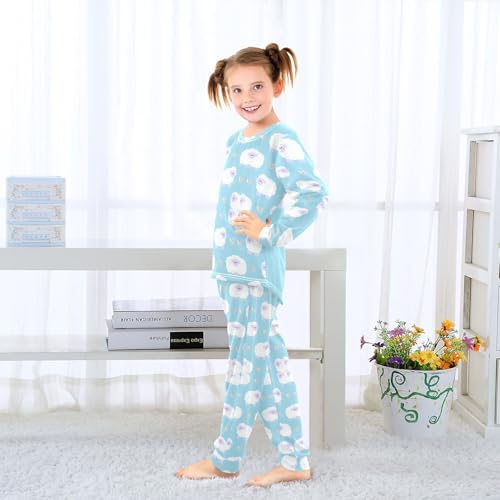 Little Sheep Blue Soft Pajama Set for All Seasons,Breathable Pjs Long Sleeve Sleepwear,Comfy Loungewear 2 Piece Underwear Set 3T 7