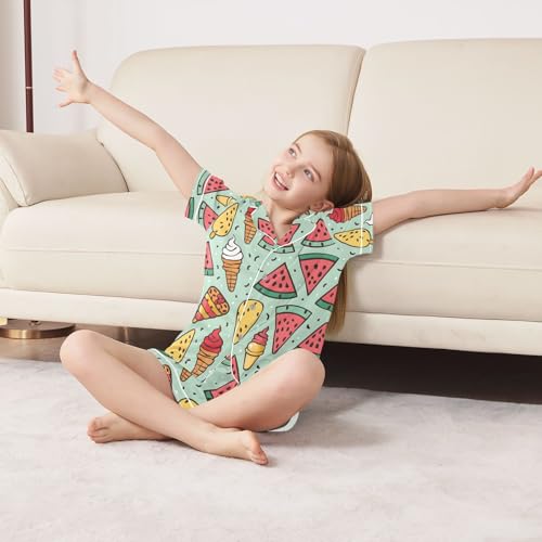 ALAZA Watermelon Ice Cream Cartoon Pajamas Satin Pajama Set Short Sleeve Button Down Sleepwear 1