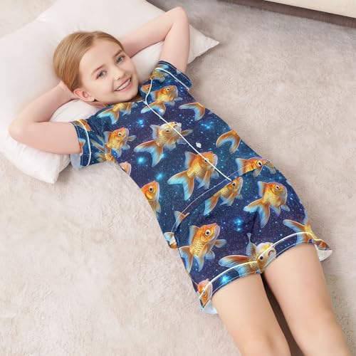 ALAZA Goldfish Galaxy Nebula Satin Pajamas Set Short Sleeve Button Down Sleepwear Summer Pjs 2 Piece 1