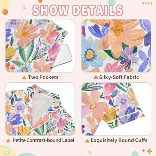 ALAZA Watercolor Flower Blossom Pajamas Satin Pajama Set Short Sleeve Button Down Sleepwear 6