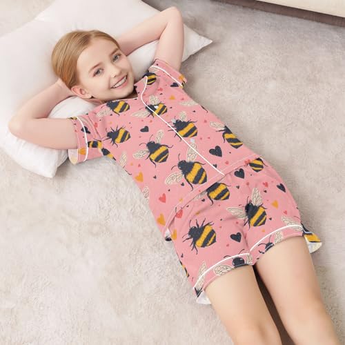 ALAZA Lovely Bee Love Heart Satin Pajamas Set Short Sleeve Button Down Sleepwear Summer Pjs 2 Piece 1