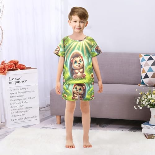 Hedgehog Flower Pajama Set Short Sleeve Summer Pajamas Sleepwear Nightwear Set Cotton 5Y 6