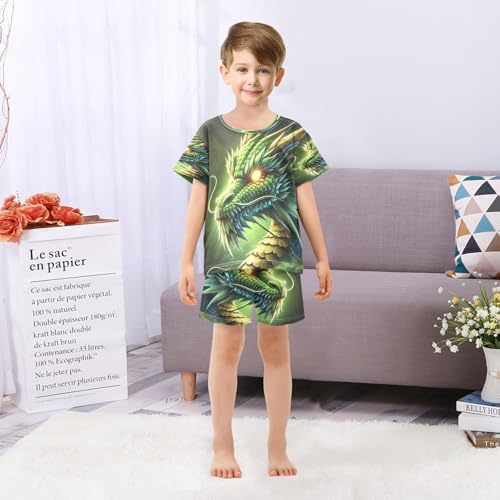 Dragon Pajama Set Short Sleeve PJS 2 Piece Summer Pajamas Shorts Sets Cotton 5Y 6