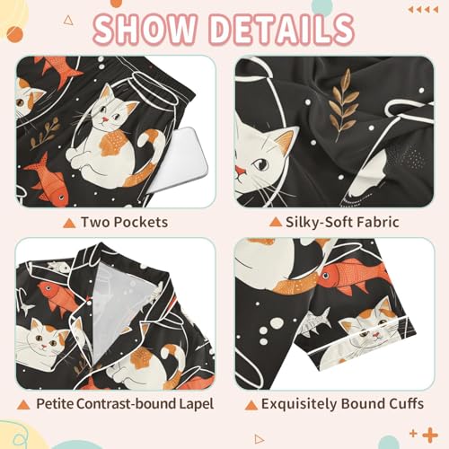 ALAZA Cat Kitten Fish Black Pajamas Satin Pajama Set Short Sleeve Button Down Sleepwear 7