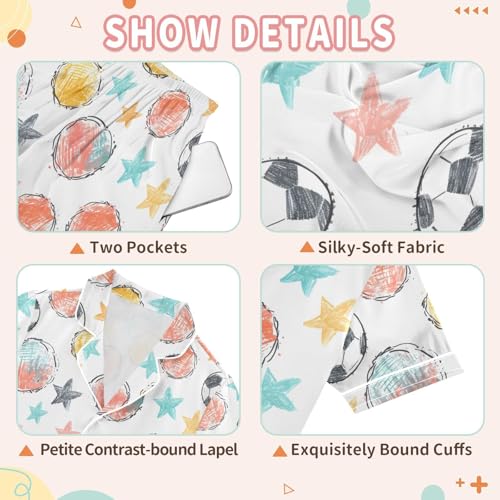 ALAZA Soccer Watercolor Star Satin Pajamas Set Short Sleeve Button Down Sleepwear Summer Pjs 2 Piece 4