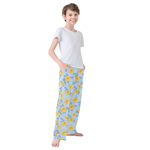 ALAZA Yellow Blossom Flower Blue Pajama Lounge Pants Long Sleep Pajama Bottoms with Pockets 1