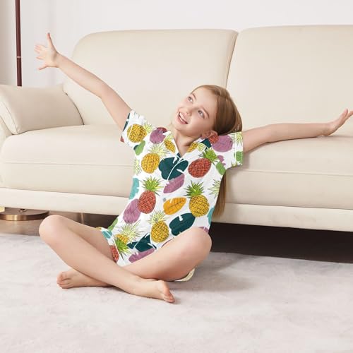 ALAZA Colorful Pineapple Palm Leaf Satin Pajamas Set Short Sleeve Button Down Sleepwear Summer Pjs 2 Piece 1