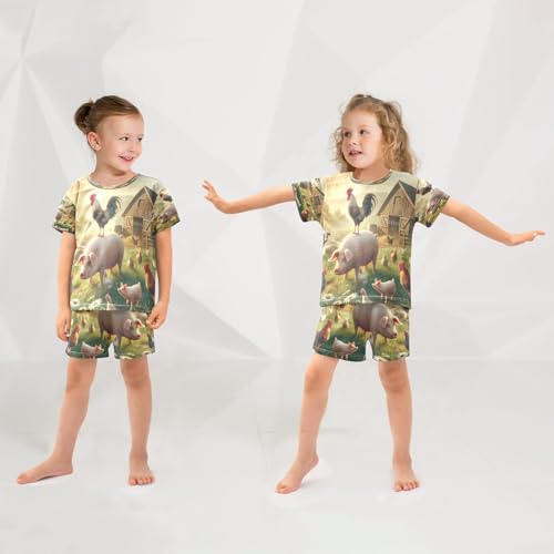 Rooster Farmhouse Pajama Set Short Sleeve PJ Set Cotton Summer Pajamas Sleepwear Soft 5Y 4