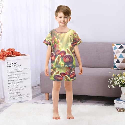 Easter Eggs Rabbit Cute Pajama Set Short Sleeve PJ Set Cotton Summer Pajamas Sleepwear Soft 5Y 4