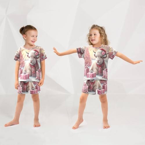 Christmas Tree Highland Cow Cute Pajama Set Short Sleeve Sleepwear Soft Pajamas Shorts Sets Cotton PJS 5Y 6