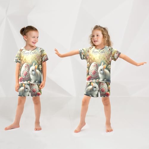 Rabbit Easter Pinkish White Pajama Set Short Sleeve PJS 2 Piece Summer Pajamas Shorts Sets Cotton 5Y 4