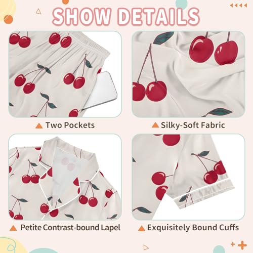 ALAZA Red Cherry Leaf Fruit Satin Pajamas Set Short Sleeve Button Down Sleepwear Summer Pjs 2 Piece 7