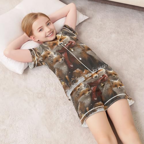 ALAZA Fox Winter Landscape Satin Pajamas Set Short Sleeve Button Down Sleepwear Summer Pjs 2 Piece 6
