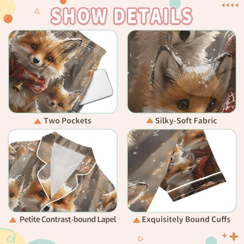ALAZA Fox Winter Landscape Satin Pajamas Set Short Sleeve Button Down Sleepwear Summer Pjs 2 Piece 7