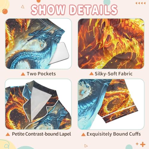 ALAZA Funny Dragon Fire Water Satin Pajamas Set Short Sleeve Button Down Sleepwear Summer Pjs 2 Piece 3