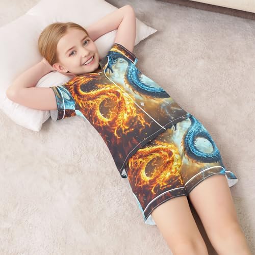 ALAZA Funny Dragon Fire Water Satin Pajamas Set Short Sleeve Button Down Sleepwear Summer Pjs 2 Piece 1