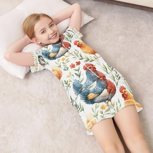 senya Chicken on Grass A Satin Summer Pajama Sets Silk Short Sleeve Button Down Sleepwear 6