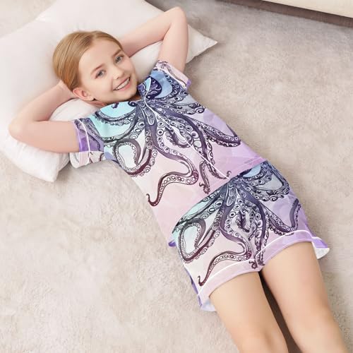 ALAZA Abtract Octopus Satin Pajamas Set Short Sleeve Button Down Sleepwear Summer Pjs 2 Piece 1