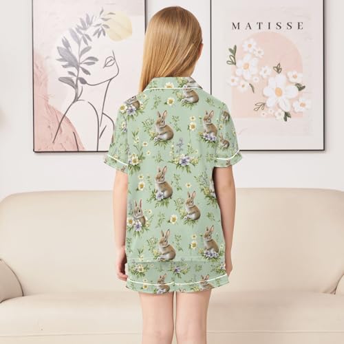 senya Watercolor Rabbit S Satin Summer Pajama Sets Silk Short Sleeve Button Down Sleepwear 3