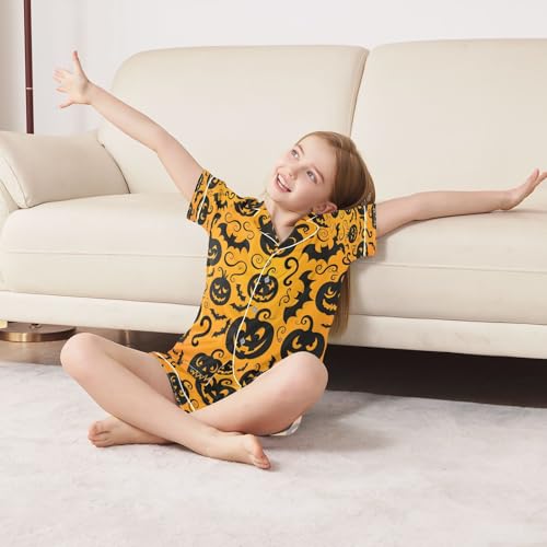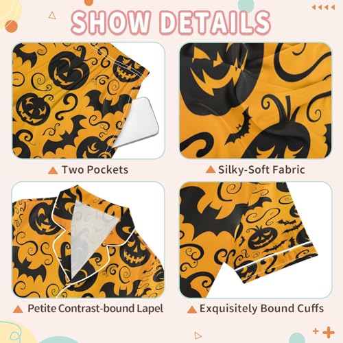 ALAZA Cute Bat Pumpkin Halloween Satin Pajamas Set Short Sleeve Button Down Sleepwear Summer Pjs 2 Piece 6