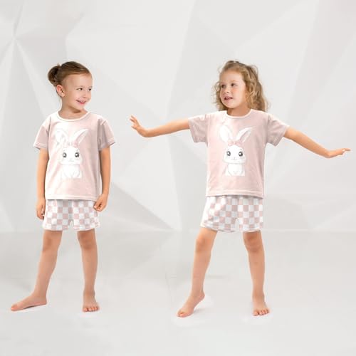 Checkerboard Plaid Bow Adorned Bunny Pajama Set Short Sleeve PJS 2 Piece Summer Pajamas Shorts Sets Cotton 5Y 4