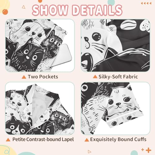 ALAZA Black White Cat Animal Kitten Satin Pajamas Set Short Sleeve Button Down Sleepwear Summer Pjs 2 Piece 7