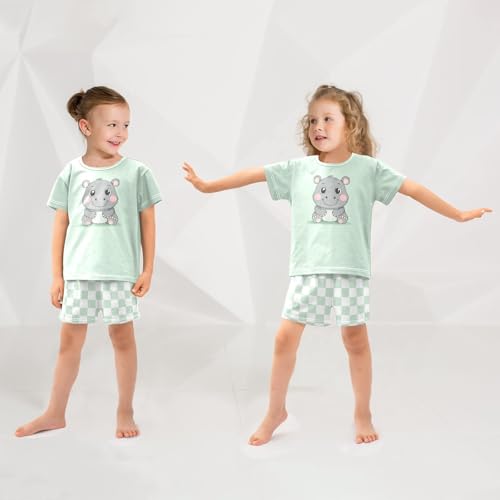 Checkerboard Plaid Cartoon Pajama Set Short Sleeve Pajamas Shorts Sets Cotton PJS 2 Piece Clothes Set 5Y 6