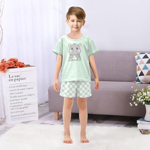 More information about Checkerboard Plaid Cartoon Pajama Set Short Sleeve Pajamas Shorts Sets Cotton PJS 2 Piece Clothes Set 5Y
