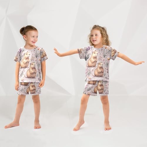 More information about Pajama Sets Short Sleeve Floral Guinea Pigs Background Soft Cotton Summer Sleepwear 2 Piece PJS Size 5-14T