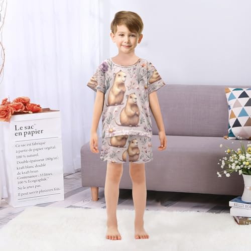 Pajama Sets Short Sleeve Floral Guinea Pigs Background Soft Cotton Summer Sleepwear 2 Piece PJS Size 5-14T 3