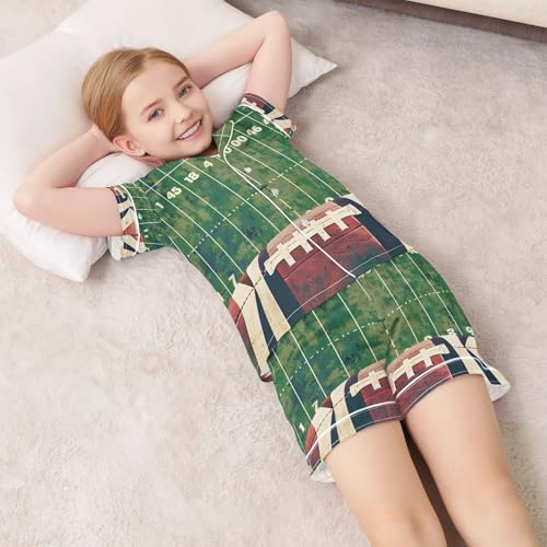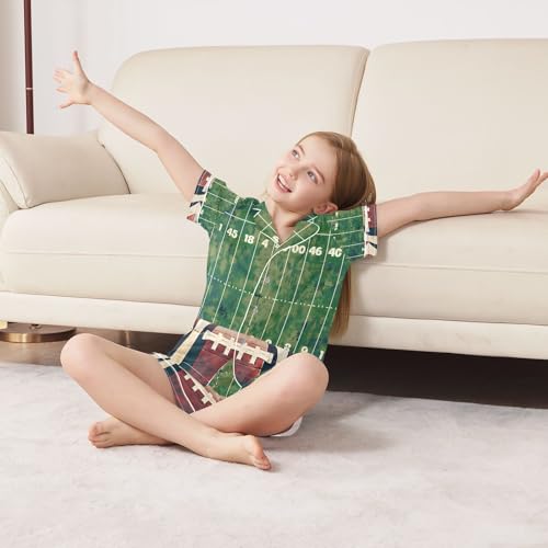 ALAZA Funny American Football Ball Green Satin Pajamas Set Short Sleeve Button Down Sleepwear Summer Pjs 2 Piece 1
